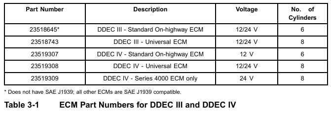 Part numbers for DDEC III and IV ECMs are listed in Table 3-1.