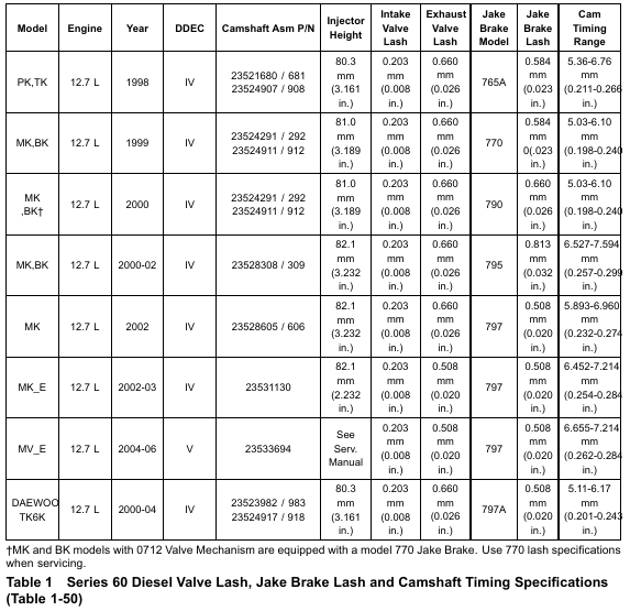 Detroit Series 60 12.7 Valve Adjustment Chart